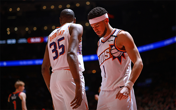 24直播网讯北京时间2月24日,NBA常规赛太阳109-127惨败猛龙,布克31分8助攻4篮板,比尔30分4篮板,杜兰特15投5中、三分5中0拿到15分4篮板4助攻3抢断3盖帽,三巨头合砍76分仍惨败,...